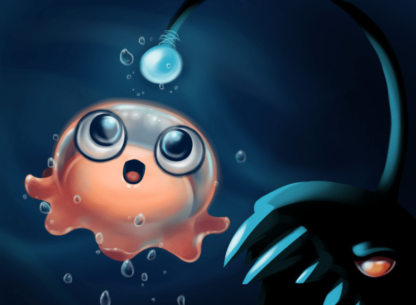 Touche la mer avec tes doigts et guide les méduses dans des paysages sous-marins.